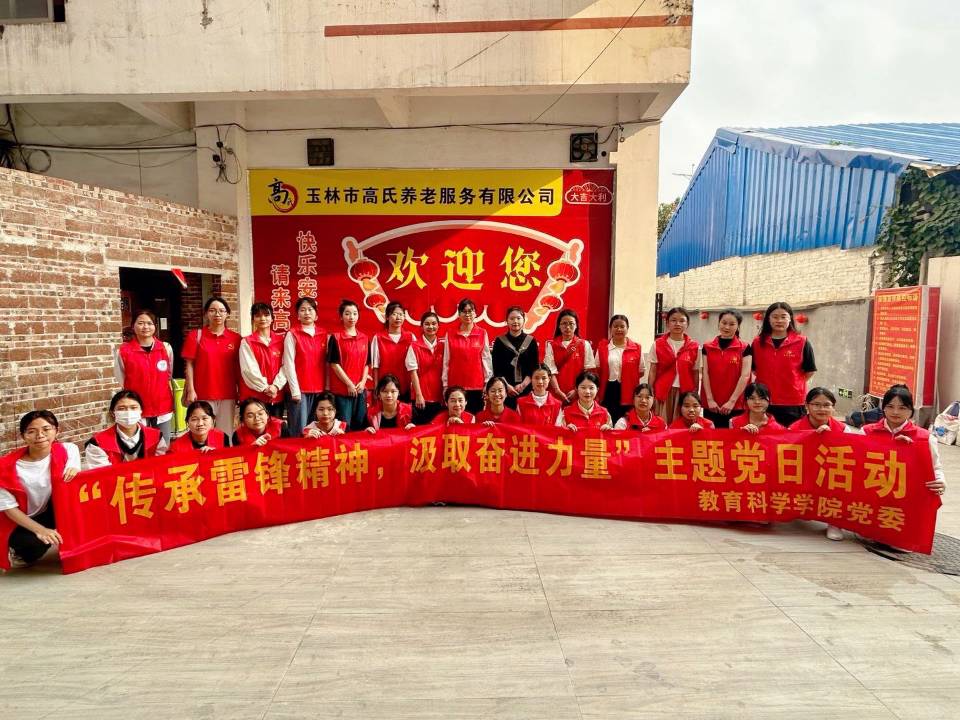 本次主题党日活动共三个子活动,分别是集体观看影片《雷锋》学雷锋志愿服务活动、预备党员入党宣誓。首先,通过集中学生党员观看影片《雷锋》,了解雷锋平凡而伟大的一生,深刻认识雷锋精神的永恒价值和时代内涵促进学生党员继承和发扬雷锋精神,从雷锋精神中汲取奋进力量,激励学生党员坚定理想信念。随后,我院组织学生党员志愿者赴高扬养老院开展系列志愿活动,学生党员志愿者运用生动的语言为老人讲述红色故事,回忆革命先辈峥嵘岁月,并为其带来才艺表演和手工剪纸展示。其间,学生党员志愿者与老人进行亲切交谈了解他们的日常生活和身体状况用实际行动诠释雷锋精神,从中真切感受雷锋精神的深刻内涵,牢记全心全意为人民服务的宗旨。最后,在党员宣誓活动上,学生党建工作联合会会长覃远带领预备党员宣读入党誓词,并组织党员为预备党员佩戴党徽,增强预备党员荣誉感、使命感与责任感。