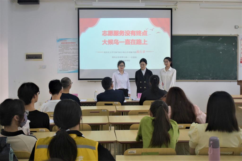 答辩会上,各项目负责人以PPT形式围绕研究背景、项目介绍、研究过程、研究结果、收获与体会等内容进行汇报。他们表示,在项目进展过程中,团队成员通过查阅文献、问卷调查、访谈、案例分析和实地考察等方法开展调研,结合自身专业知识和理论实践进一步完善项目。随后,评委根据项目可行性和创新性等方面进行提问指正,各项目团队认真答辩。其中,《“双减”背景下农村小学文化回应型课后服务实施的困境及对策研究》项目因其实践性和独特性获得评委肯定,在《乡村振兴?大候鸟——大候鸟返乡助力乡村振兴的公益项目》项目中,评委针对项目取得成果和下一步改进措施与项目团队成员进行深入交流,肯定项目团队在项目实施中的努力与成果。最后,评委希望各团队扬长避短,及时发现不足并改进,争取达到更高标准。