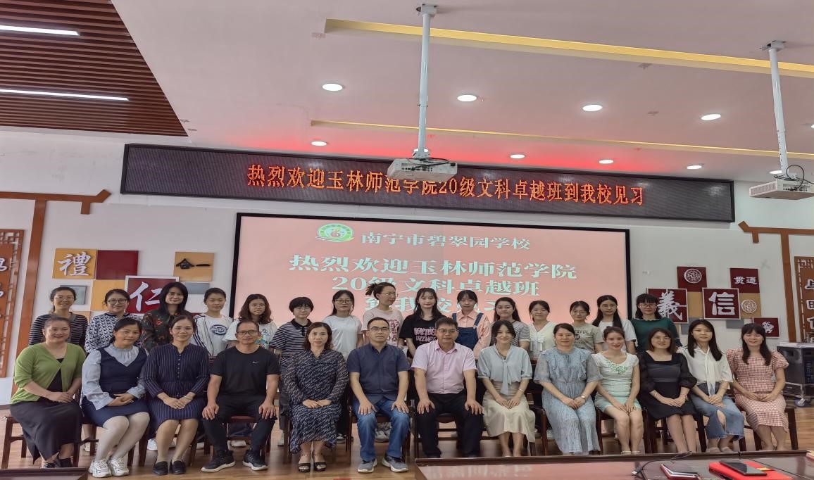 见习第一天,卓越教师班成员参加了碧翠园学校和广西壮族自治区市直属机关第三幼儿园的欢迎仪式并合影留念。两所学校的负责人都向见习成员介绍本校的基本情况、学校特色、精神文化、管理思想等。