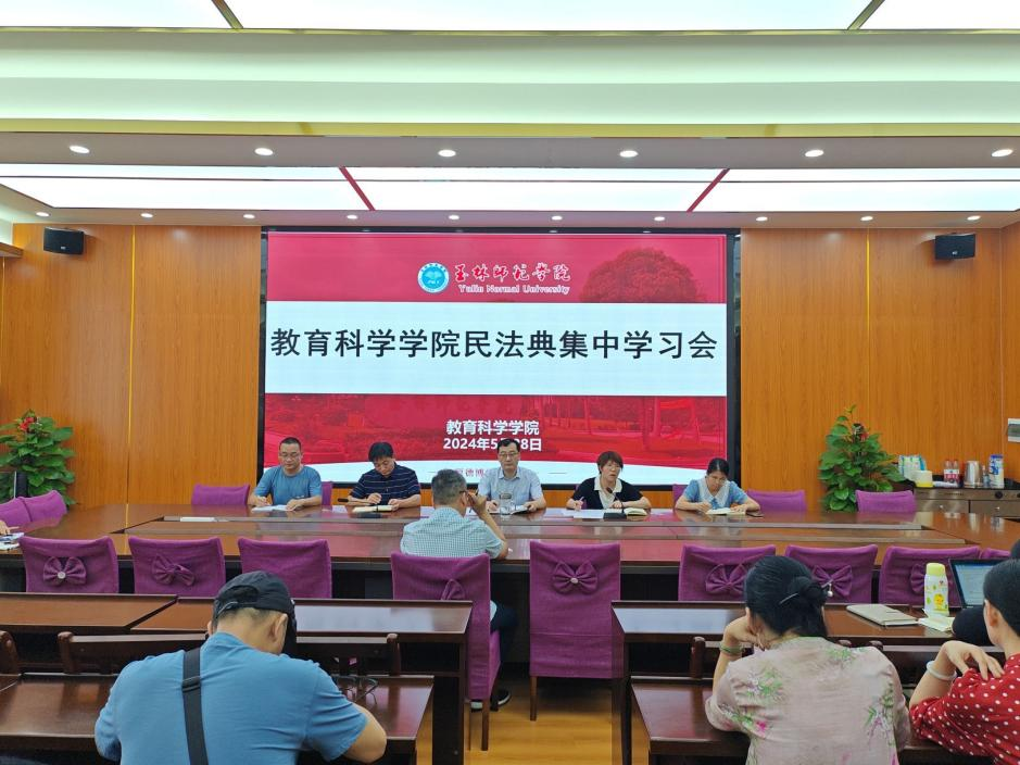 5月28日下午,我院于东校区明德楼310会议室召开教育科学学院民法典集中学习会,本次学习会由我院党委书记崔海波主持,我院领导班子成员及全体教职工参加会议。