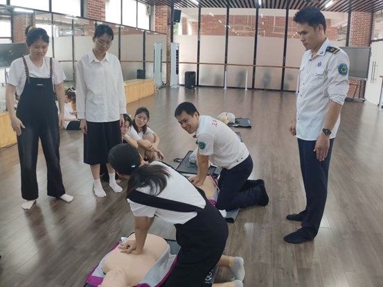 活动中,急救中心医护人员详细讲解心肺复苏术、海姆立克急救法和烧烫伤急救法等理论知识,并带领学生进行急救技能实践操作,让学生在模拟场景中亲身体验急救过程。在专业人员的指导下,学生参与热情高涨,认真学习心肺复苏术、海姆立克急救法的实施步骤并谨记注意事项,积极实践。其间,医护人员提到:根据《中华人民共和国民法典》第一百八十四条规定,因自愿实施紧急救助行为造成受助人损害的,救助人不承担民事责任。这一规定鼓励更多人在遇到紧急情况时能够勇敢地伸出援手。因此,他呼吁学生提高急救意识,学习急救知识,掌握急救技能,为构建和谐社会贡献自己力量。