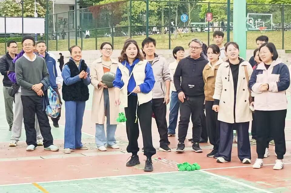 赛前,各教职工精神饱满,斗志昂扬,充分热身后积极讨论战术。随着比赛哨声响起,教职工迅速弯腰拾球,目光紧紧锁定背篓,调整最佳抛球角度,绣球飞跃而出,接球手灵敏变换身形,寻找最好接球动作,两者配合默契。色彩鲜艳的绣球一个接一个划过天空,应声落入背篓,引起现场观众热烈欢呼。随着时间流逝,比赛进入白热化阶段,各队投球手拾抛绣球速度不断加快,接球手们脚步稳健,将绣球迎入篓中。该院教职工毫不放松,争分夺秒,各队背篓中绣球数一路攀升,你追我赶,誓要一争鳌头。赛场旁同学们掌声与呐喊声此起彼伏,比赛现场热闹非凡。