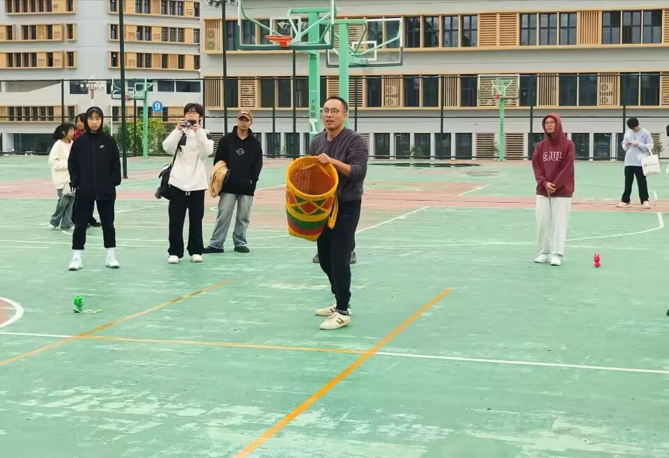 11月16日上午,我校第二十四届田径运动会之趣味项目——教工组背篓抛绣球决赛于我校东校区明德楼旁篮球场举行。本次比赛规则为规定时间内将绣球投进背篓内数量最多的队伍为胜者。据悉,该项目该院教职工队伍参加。