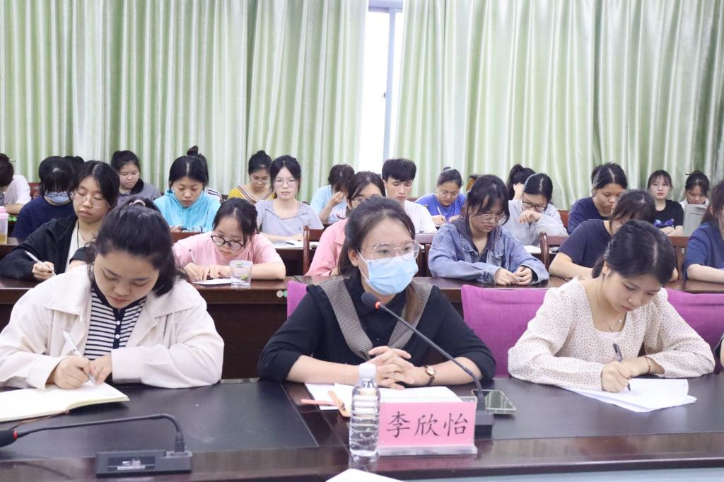 会上,各部门代表就近期工作情况进行汇报。李欣怡对各部门工作情况进行总结,首先,她祝贺我院女排再夺冠军的佳绩,肯定组织负责师范生教师技能大赛、第二十二届球类运动会等活动的部门工作人员辛勤付出。她表示,各部门需加快毕业晚会及第十九届卓越教师教育文化节等活动的工作进度,确保各项活动顺利开展。此外,2023-2024 学年我院团委会学生会主席团选拔工作已经开始,她希望2021级学生踊跃报名,2022级学生积极尝试,勇于挑战,在我院各项工作中锻炼并提升自我,同时要积极参与志愿服务活动,注重个人全面发展。最后,她强调,近期仍存在新冠感染风险,学生要注意疫情防控,加之天气变化无常,更应注意身体,加强锻炼以提高身体素质。