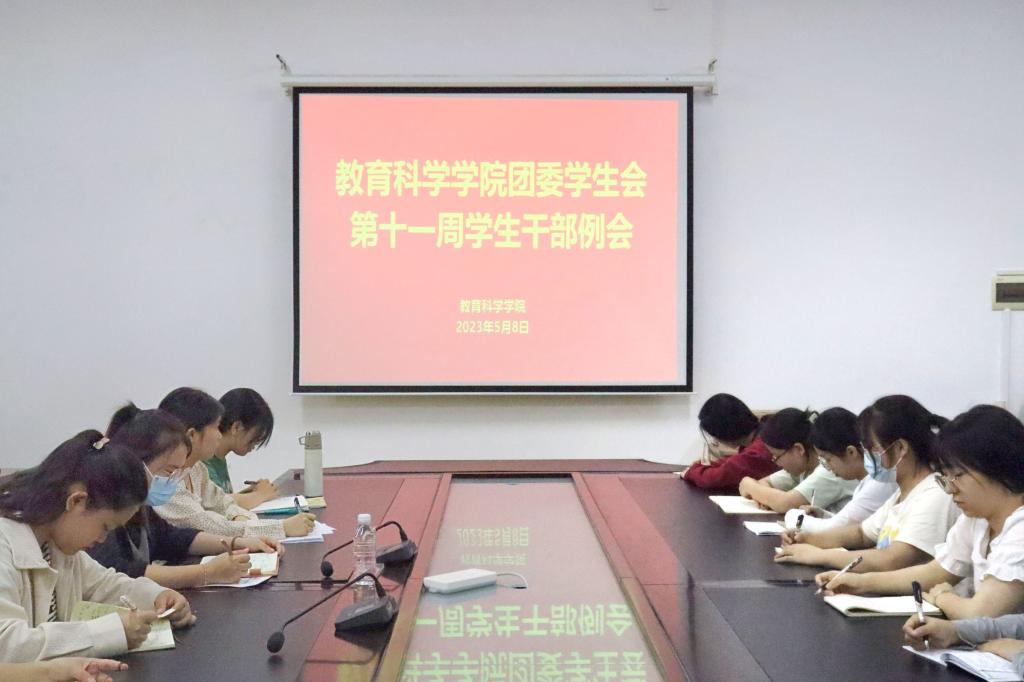 5月8日中午,我院于我校东校区明德楼学院会议室召开团委学生会第十一周学生干部例会。本次例会由我院团委书记李欣怡主讲,我院团委学生会主席团成员,全体学生干部到场参加。